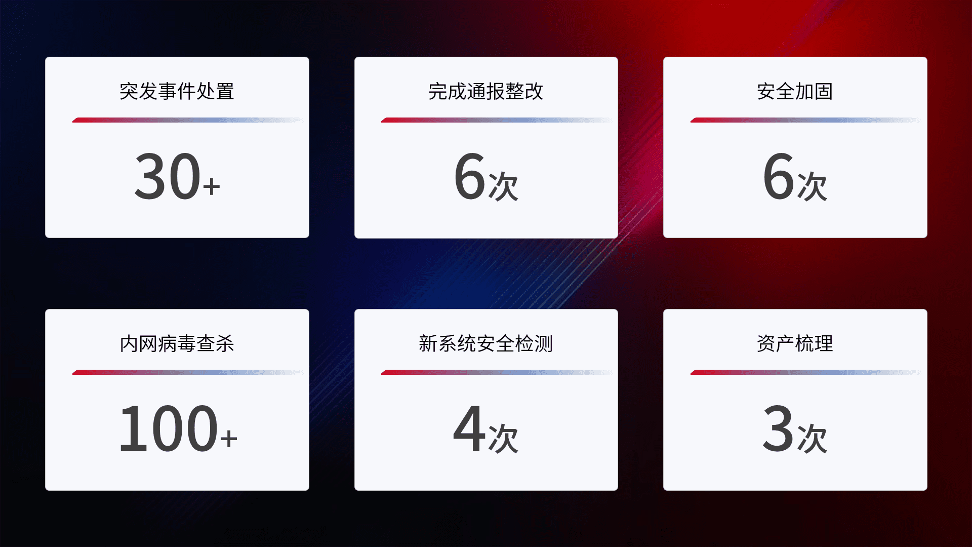 安全水平提升与事件响应:派驻经验丰富的安全工程师,,,提升医院网络安全防护的整体水平;建立突发网络安全事件的处置流程,,,,提高响应速度和处置能力。。。